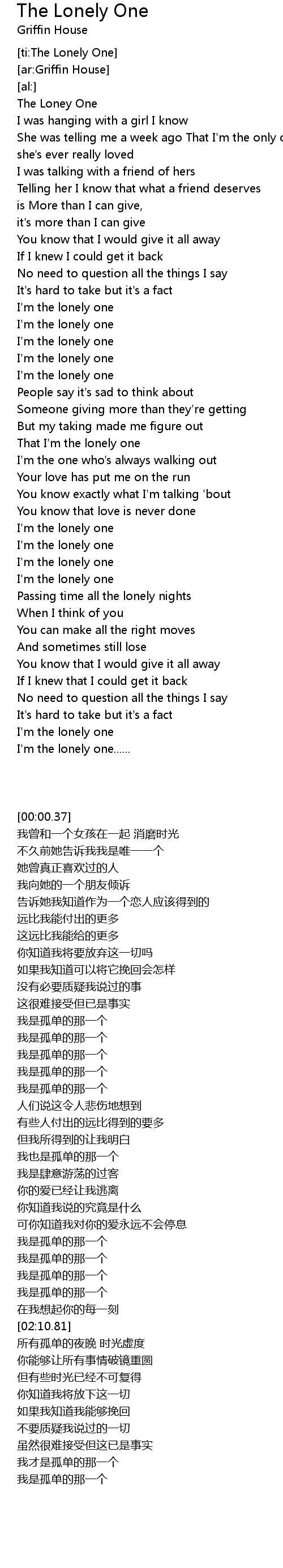 [ti:The Lonely One]