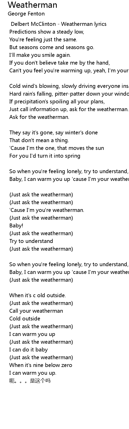 | Can't you feel you're warming up, yeah, I'm your weatherman. | |