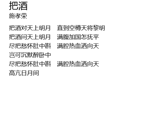 | bǎ jiǔ duì tiān shàng míng yuè zhí dào kōng zūn tiān jiàng lí míng | |