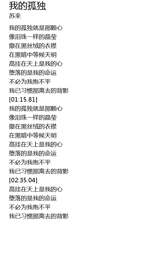 | [01:40.89] | 我的孤独就是那颗心 |