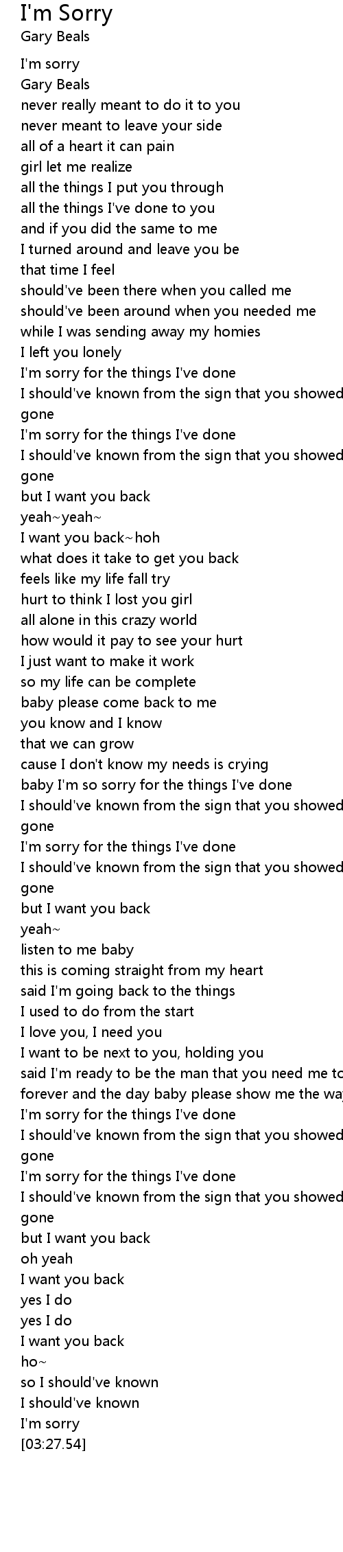 baby I'm so sorry for the things I've done |