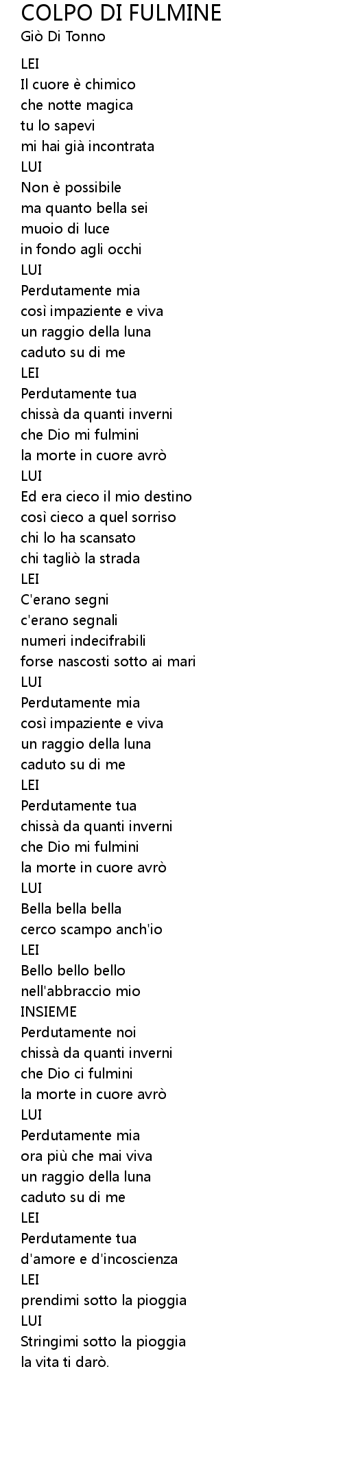 | Song | COLPO DI FULMINE |