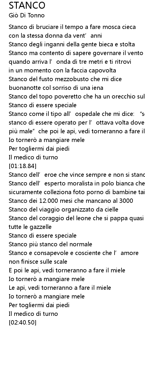 | [02:01.38] | Stanco piu stanco del normale |
