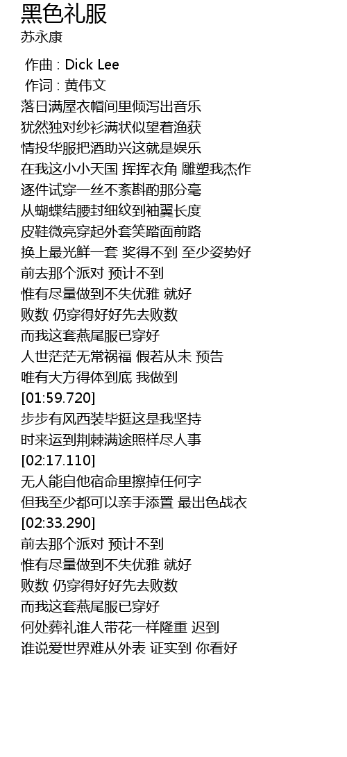 | [00:00.00] | zuò qǔ : Dick Lee |