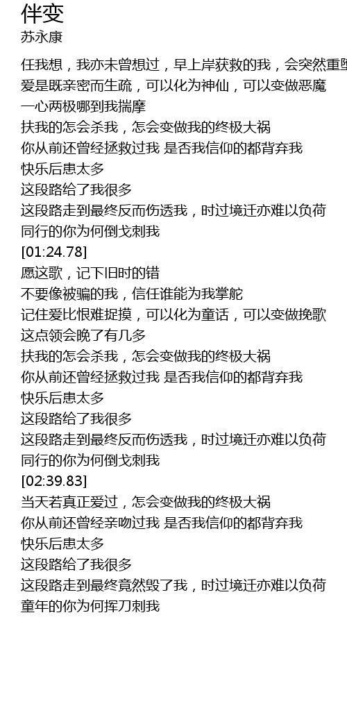 | [02:30.63] | 同行的你为何倒戈刺我 |