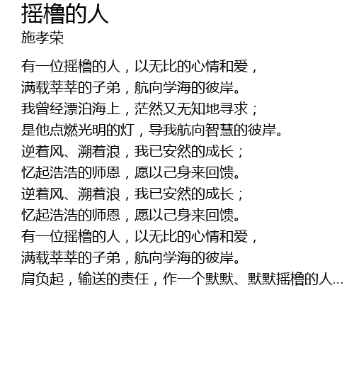 | 有一位摇橹的人,以无比的心情和爱, | |