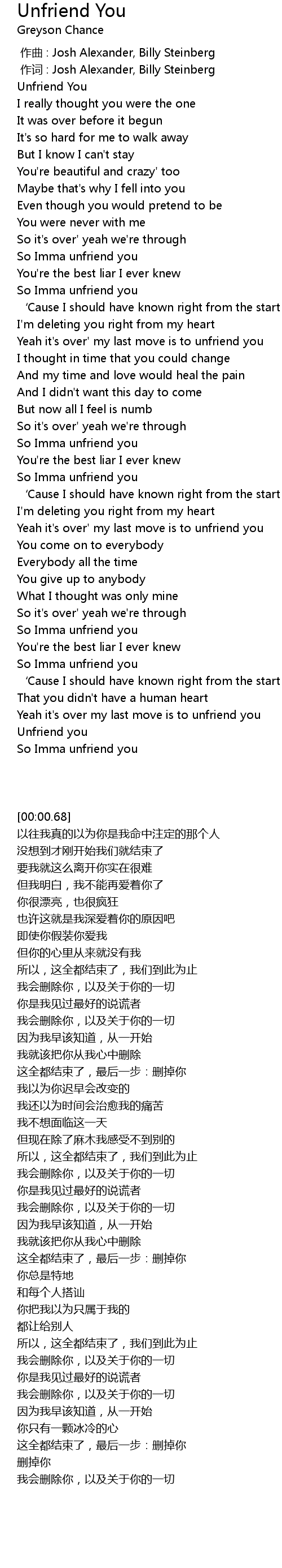 | [00:00.68] | Unfriend You |
