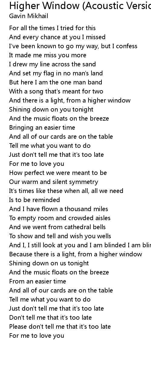 Please don't tell me that it's too late |