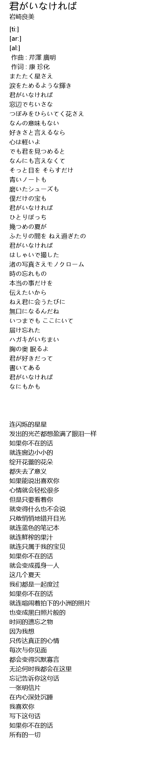 | [02:32.41] | 君がいなければ |