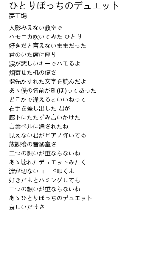 | [02:05.76] | あゝ壊れたデュエットみたく |