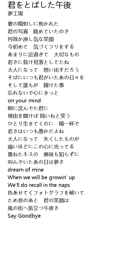 | Song | 君をとばした午後 |