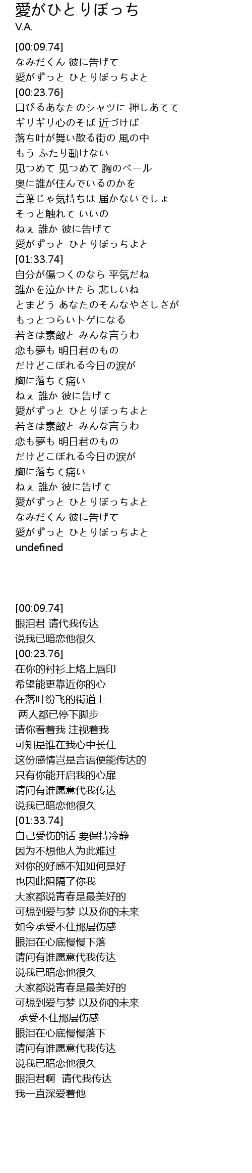 | [00:15.75] | 愛がずっと ひとりぼっちよと |
