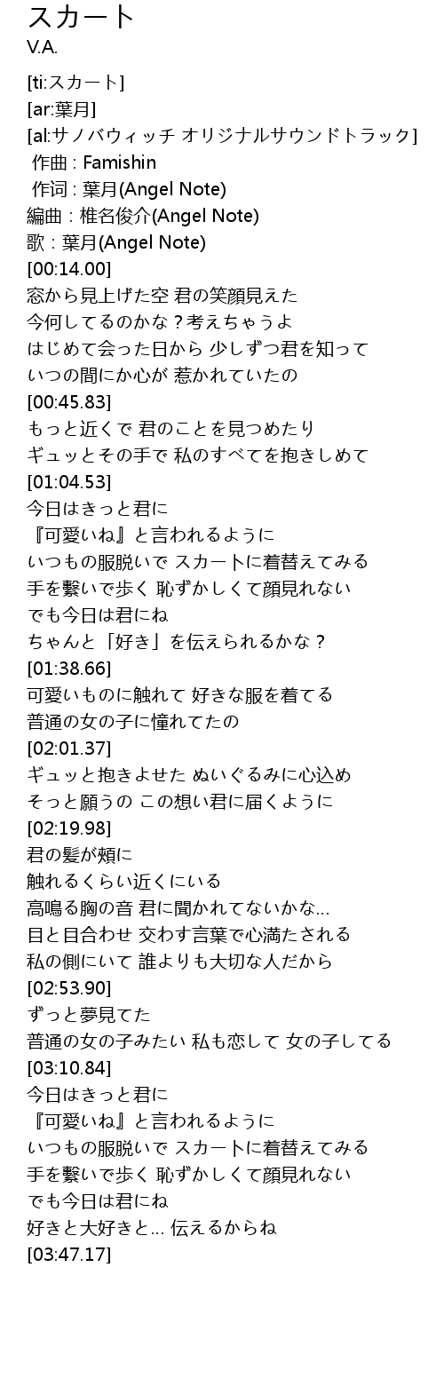 | [00:12.00] | 歌:葉月(Angel Note) |