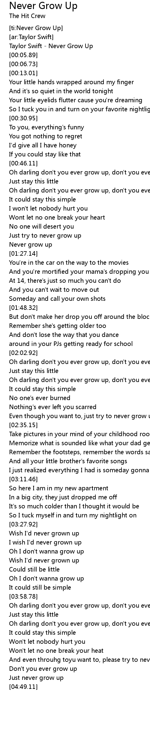 [ti:Never Grow Up] |