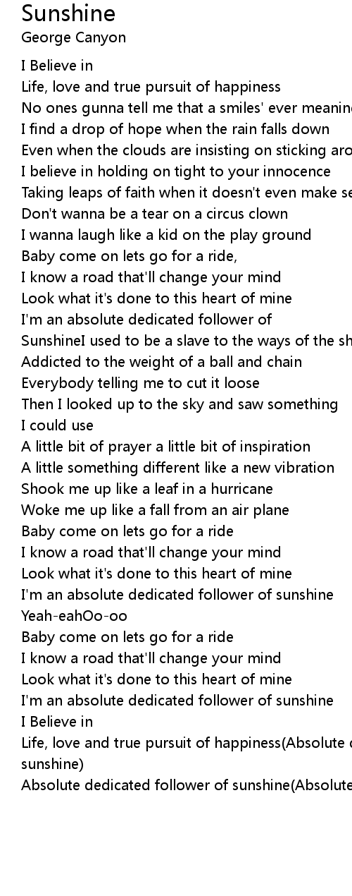 I'm an absolute dedicated follower of sunshine |