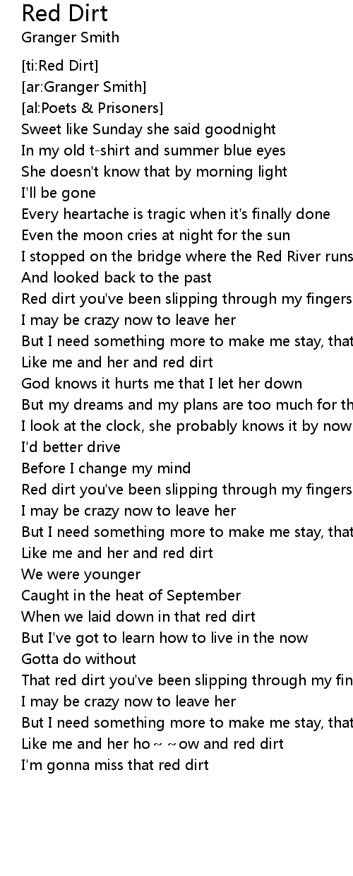 | [02:44.80] | That red dirt you' ve been slipping through my fingers |