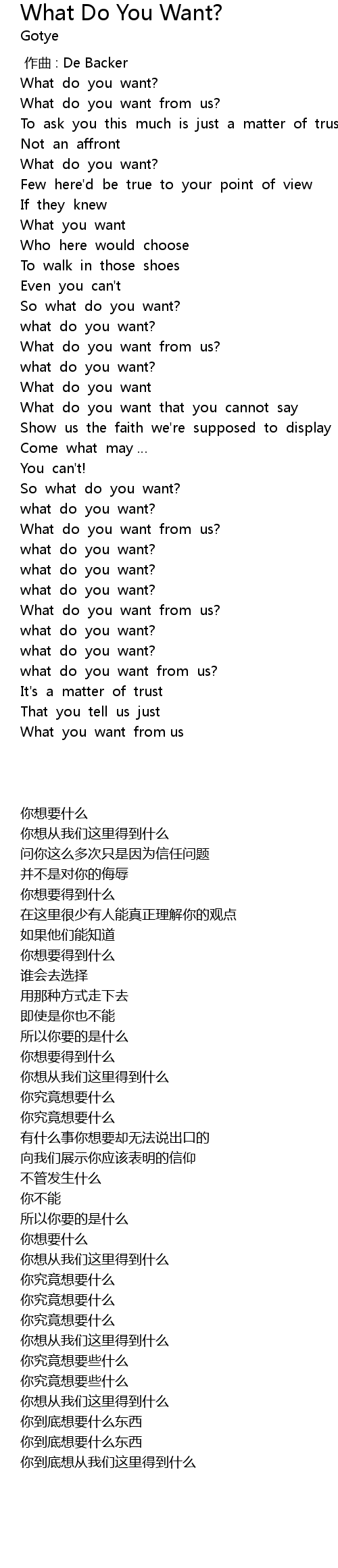 | [01:42.433] | What do you want that you cannot say |