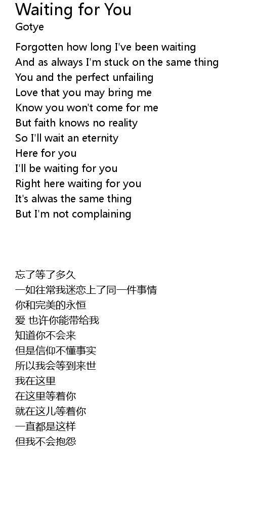 | [00:01.96] | Forgotten how long I've been waiting |