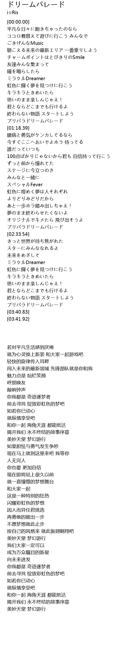 | [03:34.00] | プリパラドリームパレード |