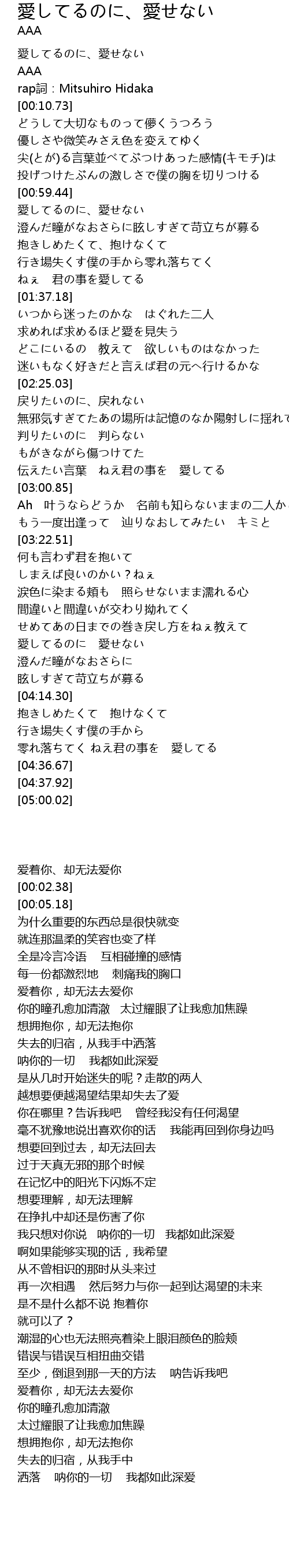 | [00:00.00] | 愛してるのに、愛せない |