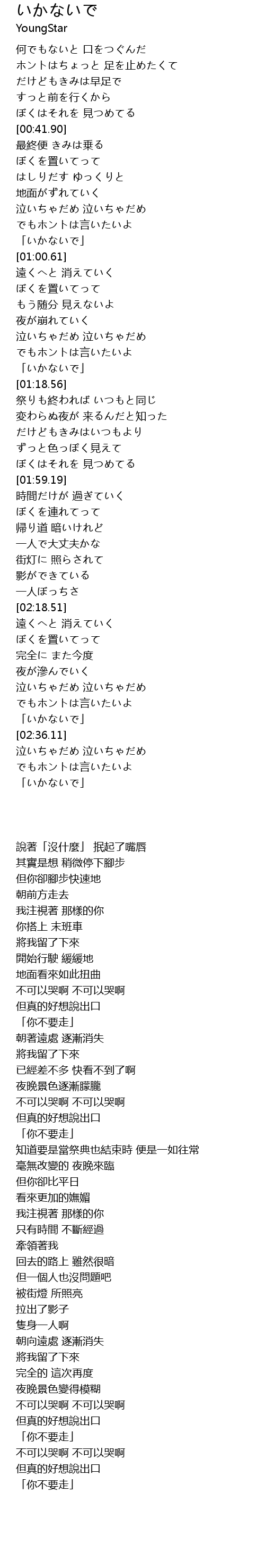 | [00:53.01] | 泣いちゃだめ 泣いちゃだめ |