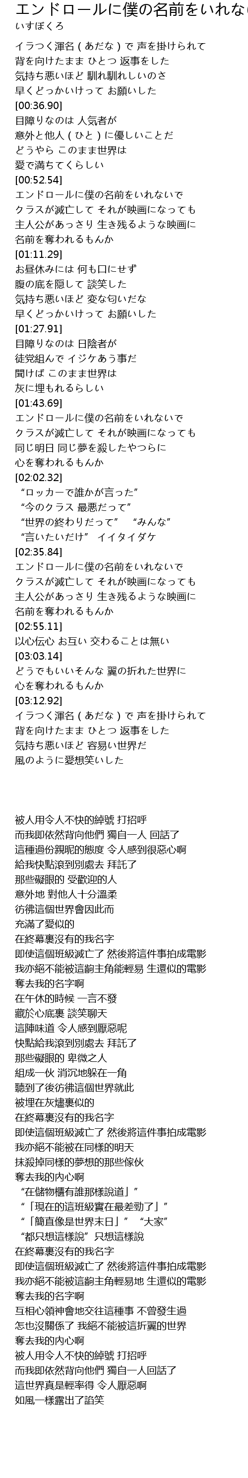 | [01:45.19] | エンドロールに僕の名前をいれないで |
