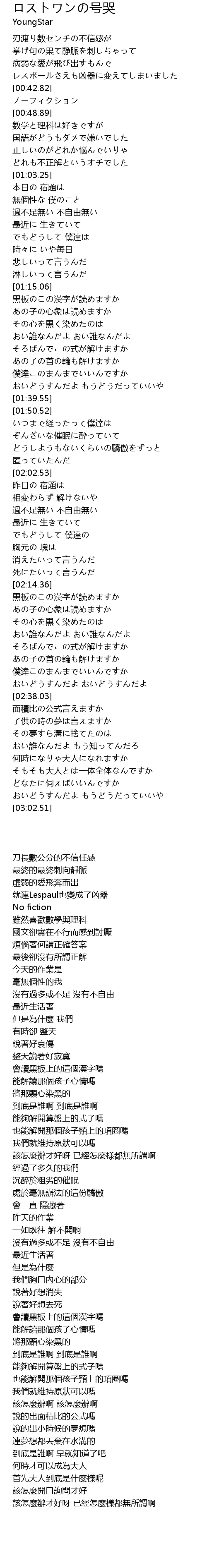 | [01:24.23] | おい誰なんだよ おい誰なんだよ |