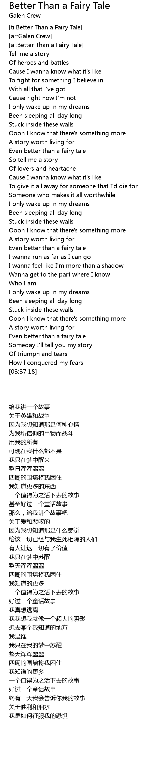 [ti:Better Than a Fairy Tale] |