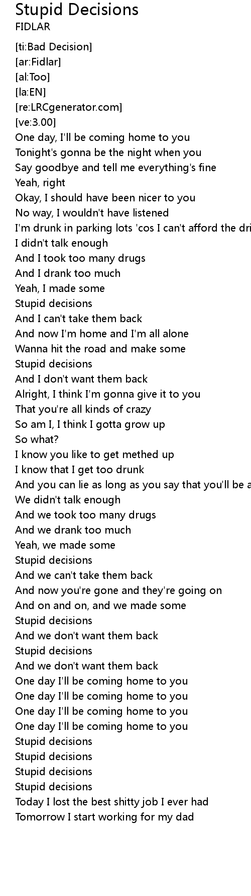 | [01:00.15] | Stupid decisions |