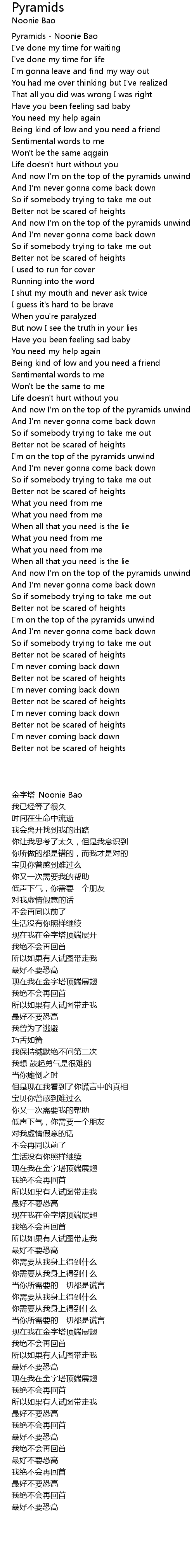 And now I'm on the top of the pyramids unwind |