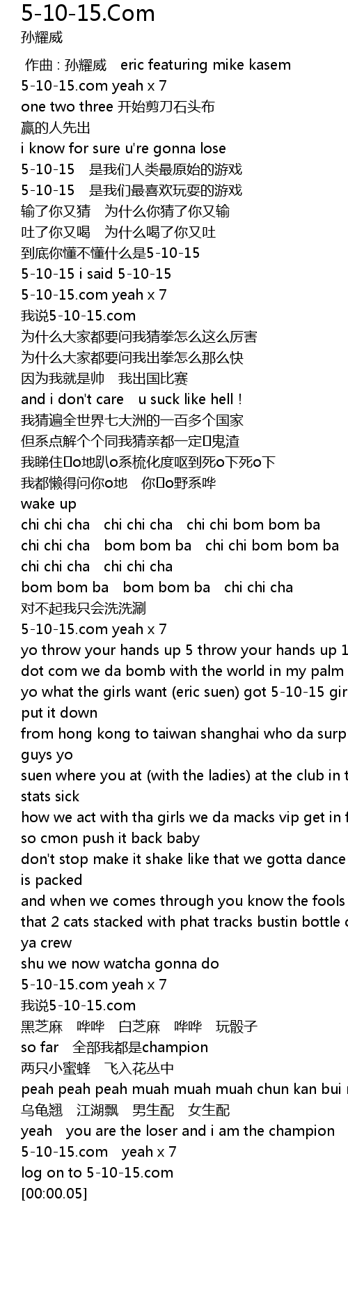| [02:47.62] | 5-10-15.com yeah x 7 |