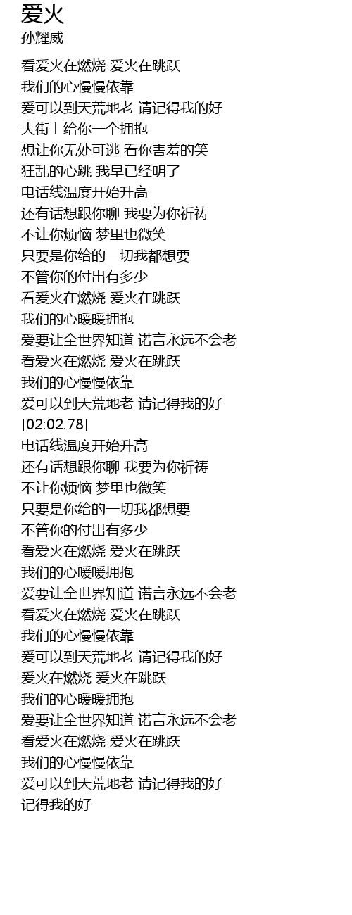 | [02:56.31] | 看爱火在燃烧 爱火在跳跃 |