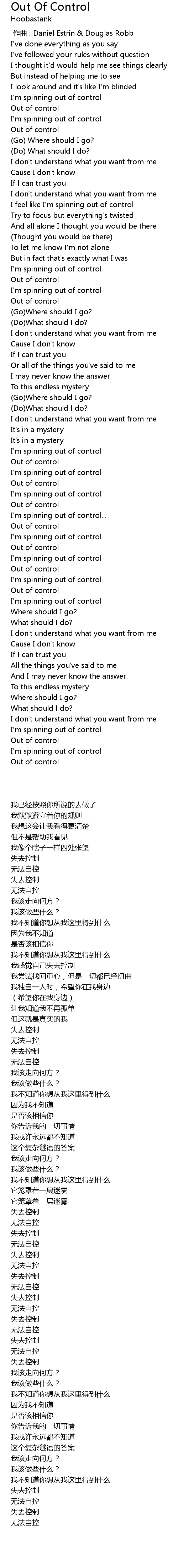 | [02:39.0] | Out of control |