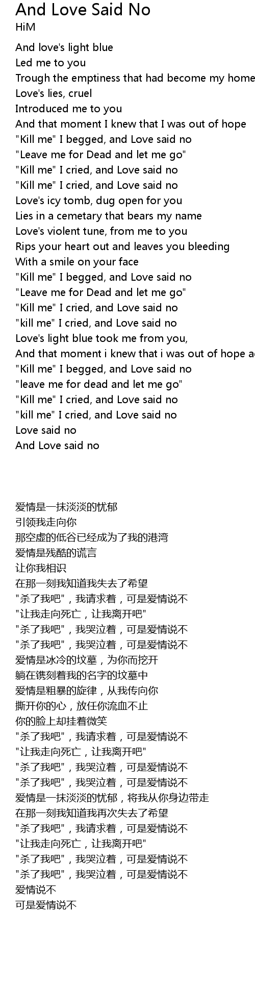 "Kill me" I begged, and Love said no |
