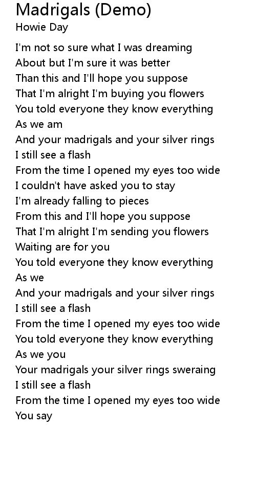 And your madrigals and your silver rings |