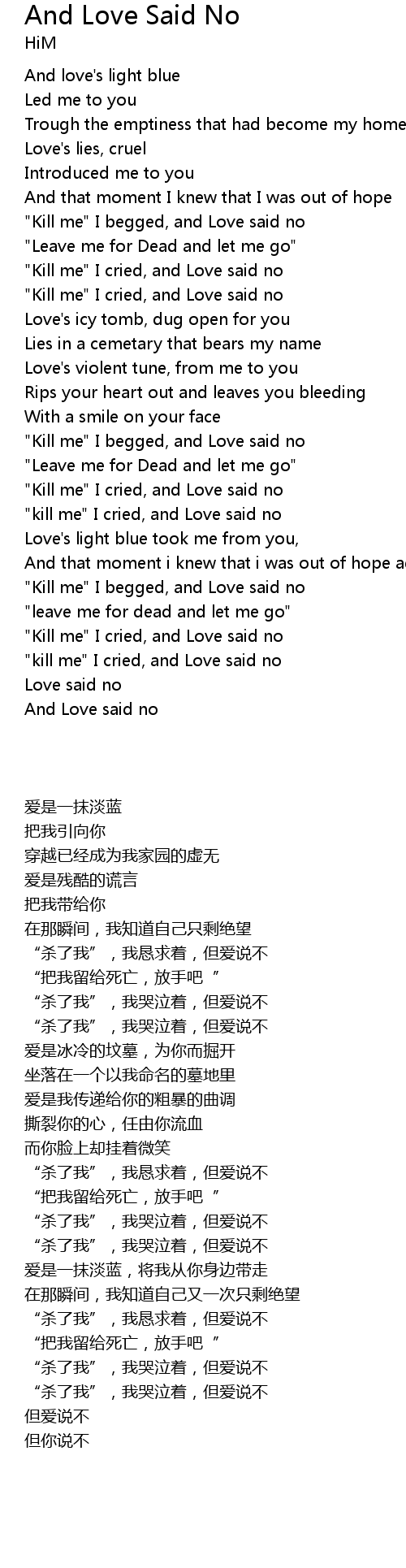 "Kill me" I begged, and Love said no |