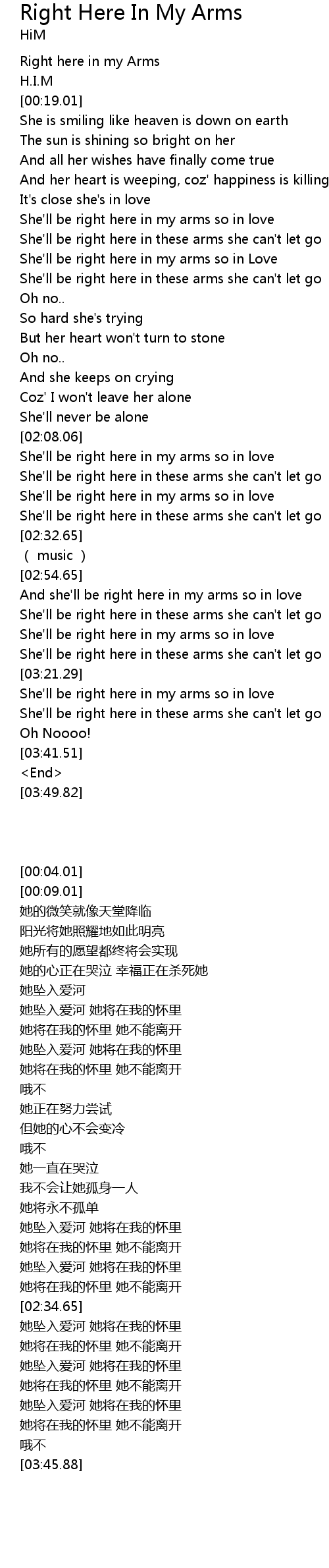 | [00:04.01] | Right here in my Arms |