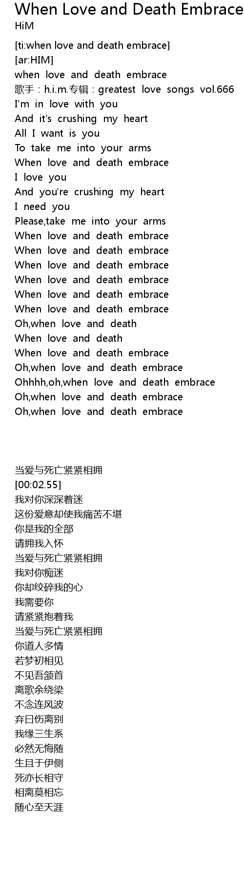| [02:56.80] | When love and death embrace |