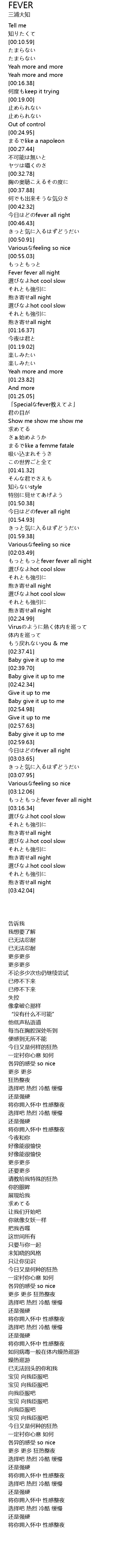 | [03:13.13] | もっともっとfever fever all night |