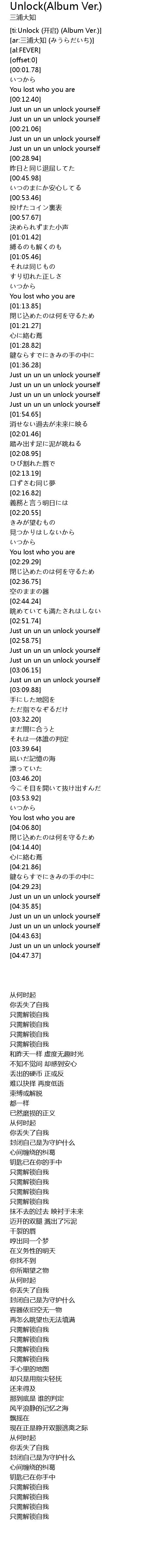 | [ti:Unlock (开启) (Album Ver.)] | |