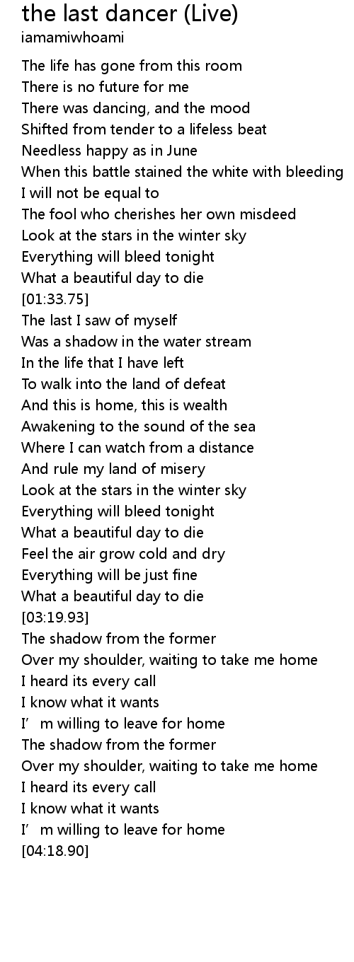 | [00:47.52] | Shifted from tender to a lifeless beat |
