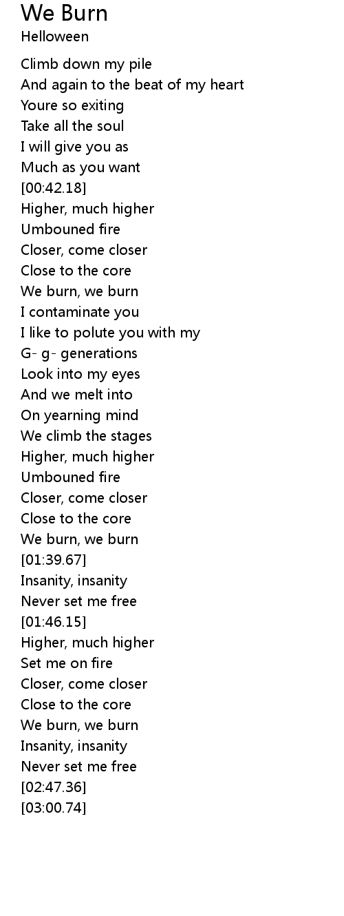 | [00:58.31] | We burn, we burn |