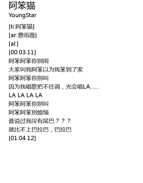 | [00:41.27] | 阿笨阿笨你别叫 |