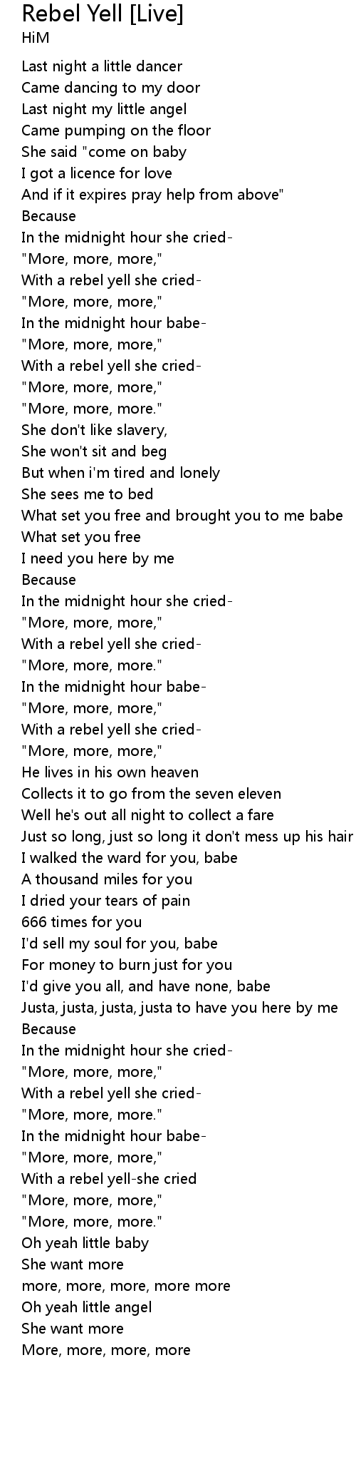 In the midnight hour she cried- |