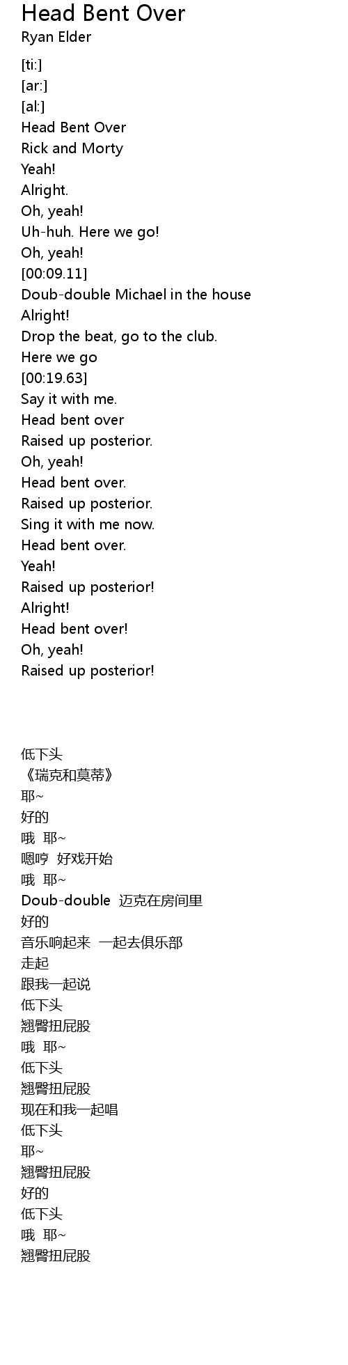 | [00:00.00] | Head Bent Over |