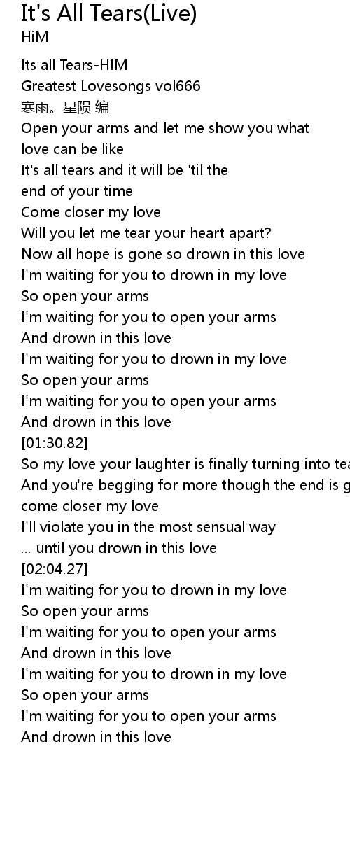 | [00:43.54] | It' s all tears and it will be ' til the |