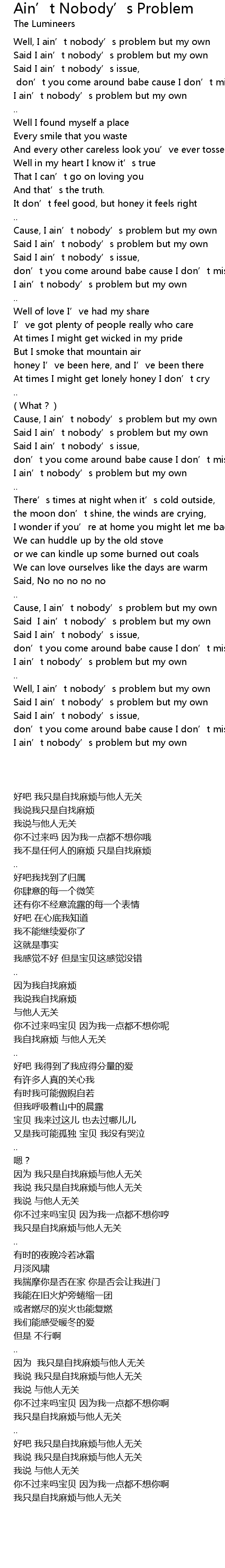 | [04:36.53] | I ain' t nobody' s problem but my own |