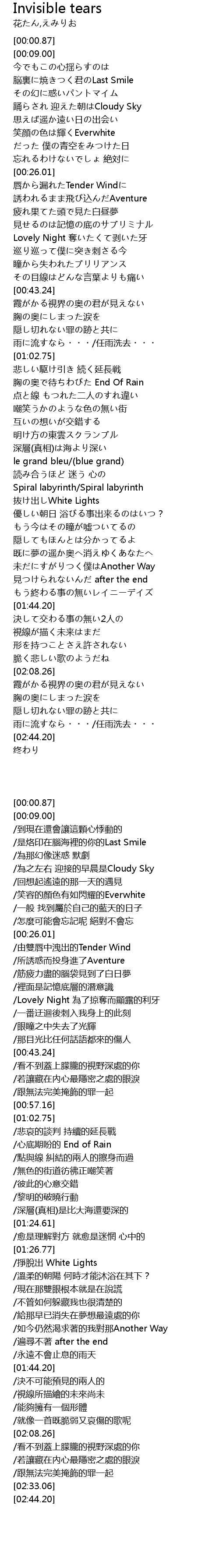 | [01:40.94] | 見つけられないんだ after the end |