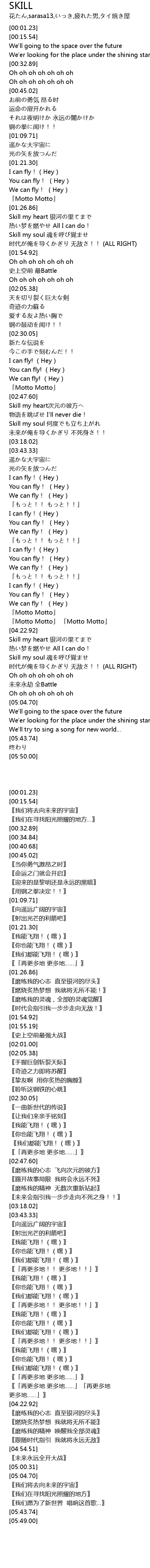 | [03:01.10] | Skill my soul 何度でも立ち上がれ |