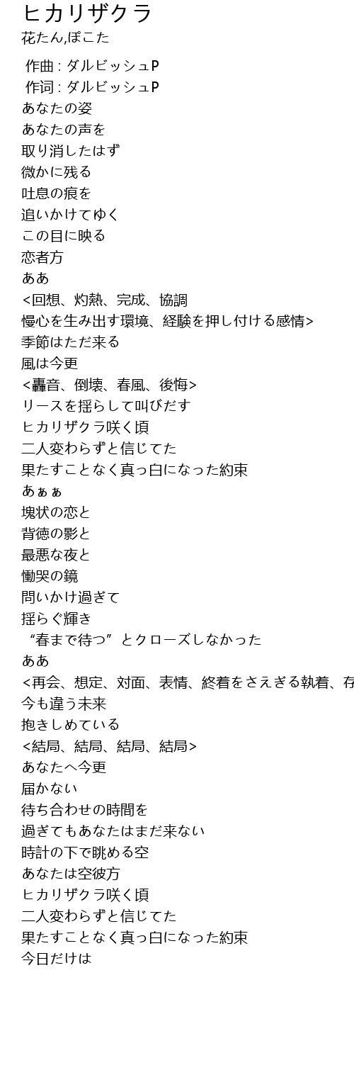 | [01:24.57] | ヒカリザクラ咲く頃 |